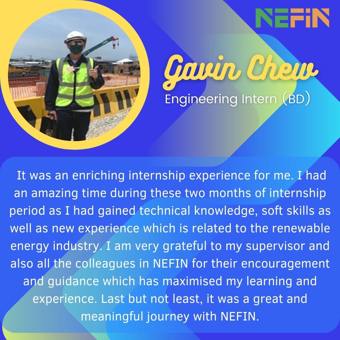 Gavin Chew, our Engineering Intern (BD), shared his thoughts of working in NEFIN.