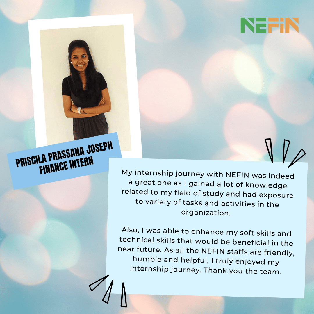 Priscila Prassana, our Finance Intern, shared her thoughts of working in NEFIN. If you are interested to join NEFIN team,