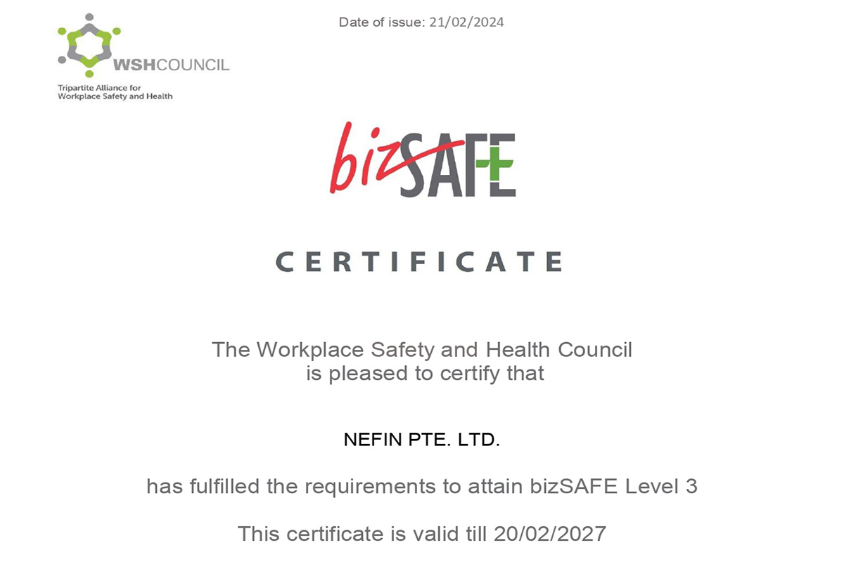 NEFIN立盈在这一年取得了重大飞跃,获得了 bizSAFE 认证,增强了我们在新加坡开展更广泛的碳中和项目的能力。 安全是立盈基因中的一个重要组成部分,我们致力于毫不妥协地坚持严格的安全和健康标准。