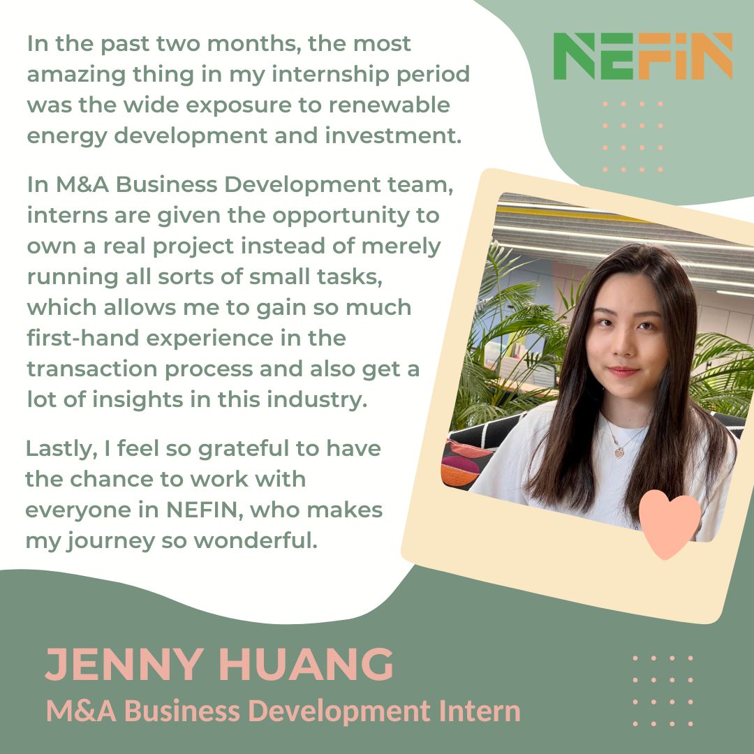 Jenny Huang, our M&A Business Development Intern, shared her thoughts of working in NEFIN.